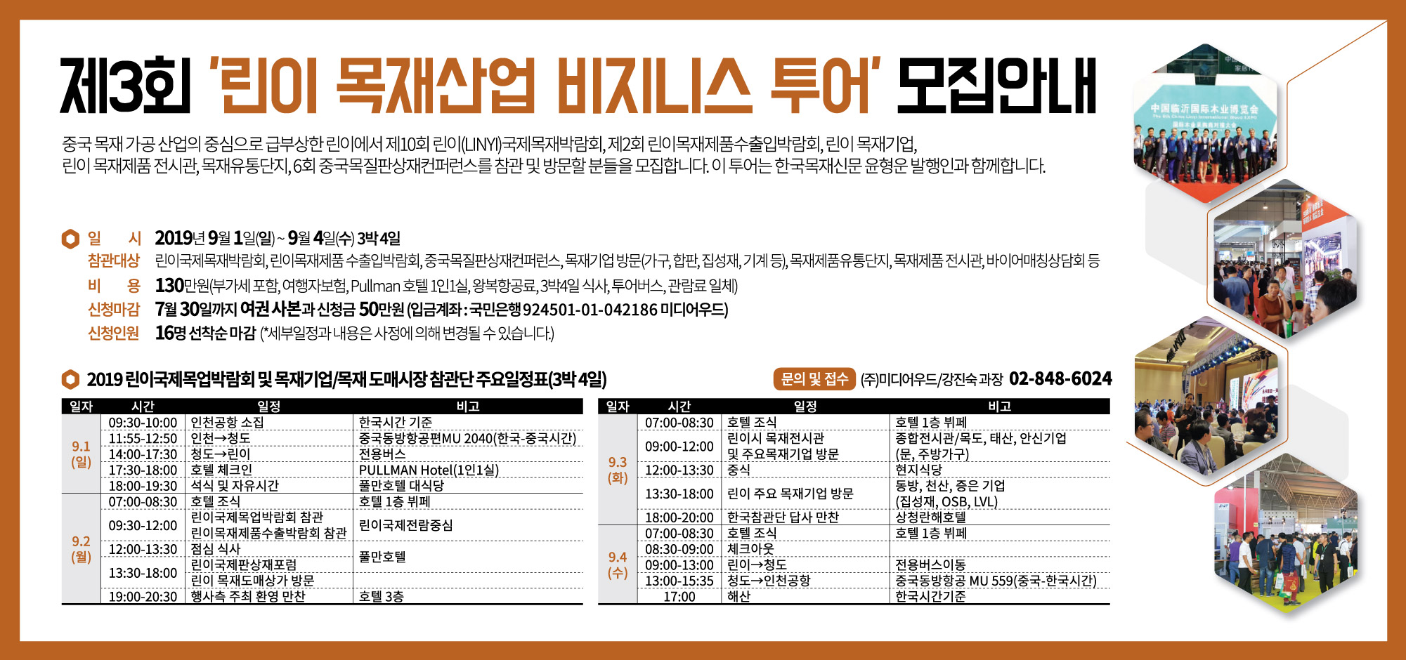 (주)미디어우드가 중국 목질판상재 최대 도시 린이시에서 '제3회 린이목재산업 비즈니스 투어 2019' 참가자를 모집합니다!
