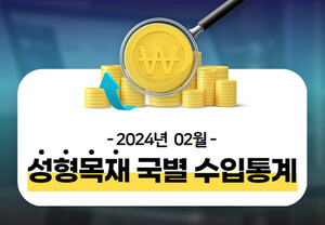 ◇ 2024년 2월 월간 통계 동향 요약2024년 2월 목재류 수입통계를 집계한 결과, 전년 동월 대비 누계 금액기준으로 18.9%가 감소해 1월 감소치 보다 1.0%P 낮아졌다. 2024년 2월 목재제품의 전체 수입물량은 작년 동월 누계 대비 4.3% 감소했다. 목재류 전체 수입단가는 작년 2월 누계 보다 약 15.2% 하락했다.원목의 2월 누계 수입금액은 전년 2월 보다 28.9% 감소했고, 제재목은 22.2% 감소했다. 전년 동월 물량기준으로 보면 원목은 17.8% 감소했고, 제재목은 17.2% 감소했다. 합판의 2월 누계금액