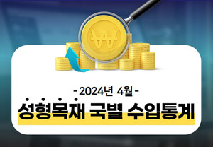 ◇ 2024년 4월 월간 통계 동향 요약2024년 4월 목재류 수입통계를 집계한 결과, 전년 동월 대비 누계 금액기준으로 13.8%가 감소해 3월 감소치에 비해 4.4%P 높아졌다. 2024년 4월 목재제품의 전체 수입물량은 작년 동월 누계 대비 0.7% 감소했다. 물량은 작년 누계 수준과 비슷해졌다. 목재류 전체 수입단가는 작년 4월 누계 보다 약 13.2% 하락했다. 목재류 단가가 지속적으로 하락하는 추세다.원목의 4월 누계 수입금액은 전년 4월 보다 32.3% 감소했고, 제재목은 13.9% 감소했다. 전년 동월 물량기준으로 보