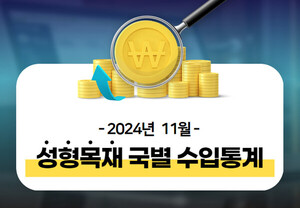 ◇ 2024년 11월 월간 통계 동향 요약2024년 11월 목재류 수입 통계를 집계한 결과, 전년 동월 대비 누계 금액 기준으로 3.8%가 감소해 10월 감소치에 비해 0.5%P 높아졌다. 2024년 11월 목재제품의 전체 수입 물량은 작년 동월 누계 대비 0.4% 늘었다. 목재류 전체 수입단가는 작년 11월 누계 보다 약 4.2% 하락했다. 목재류 단가가 전반적으로 하락하는 추세지만 감소 폭은 줄어드는 추세다.원목의 11월 누계 수입 금액은 전년 11월 누계보다 23.0% 감소했고, 제재목은 4.0% 감소했다. 전년 동월 누계 물