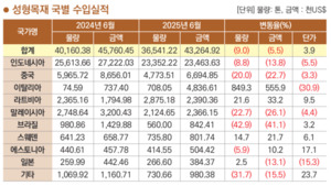 2025년 6월 성형목재 국별 수입실적성형목재 국별 수입금액은 인도네시아>이탈리아>중국>말레이시아>라트비아 순2025년 6월까지 누적 금액은 43,264천달러. 약 614억원.전년 동월 누계 대비 수입금액 5.5% 감소. 물량 9.0% 감소. 단가 3.9% 상승.수입국 중 인도네시아가 금액으로 54.1%를 차지. 물량으로 63.0% 차지.