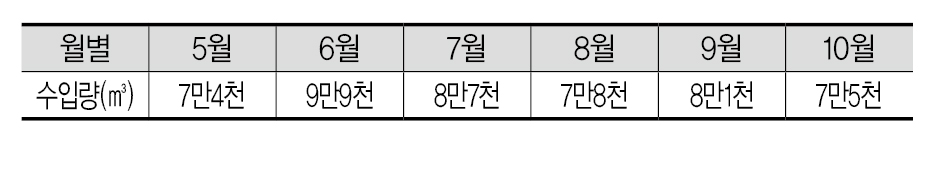 •12월 수입가격 - 160$/㎥(5$ 인하)