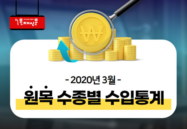 2020년 3월 누계집계 기준으로 수출 및 수입 모든 품목이 전년도 동월 금액대비 크게 감소했다. 코로나19 영향으로 물량수급에 문제가 생겼다. MDF 수입이 금액기준으로 전년대비 48.5%가 감소했다. 다음은 칩이 28.7%, 목탄이 26.9% 감소했다. 제재목은 26.4%, 원목은 17.5% 감소했다. 단판은 11.5%. PB와 OSB가 10.5% 감소했다. 합판은 베트남산 합판의 장점반덤핑관세 부과예정 소식에 구매량을 늘려 0.7% 감소에 머물렀다. 품목 중에서 가장 낮은 감소추세를 보였다. 합판수출도 32.3% 감소했다.