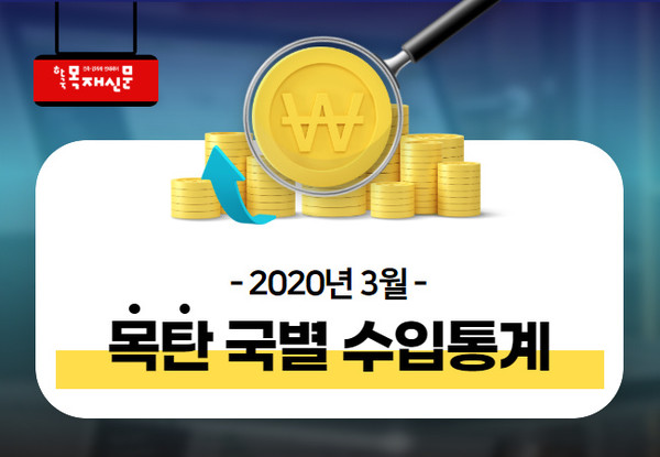 2020년 3월 목탄 수입 금액은 전년도 동월 대비 26.9% 감소했다. 수입금액이 가장 많은 국가는 베트남으로 8,030천 달러가 수입됐다. 물량으로는 인도네시아가 10,336톤으로 가장 많고 다음이 베트남으로 6,867톤이다. 그 다음은 라오스로 4,794톤이다.