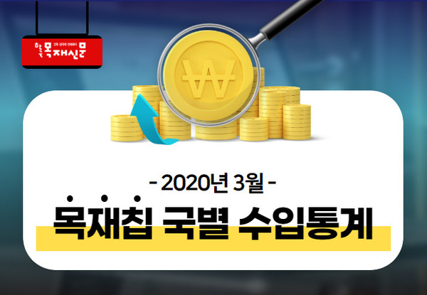 2020년 3월 목재칩(펠릿)단판 수입 금액은 전년도 동월 대비 28.7% 감소했다. 수입금액이 가장 많은 국가는 베트남으로 70,561천 달러가 수입됐다. 베트남은 목재칩(펠릿)은 총수입금액의 70%를 차지한다. 베트남 다음으로 말레이시아, 그 다음은 인도네시아 순이다.