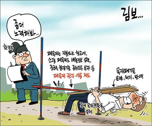 관련기사 목재폐기물 재활용, 법과 제도 상 불이익 철폐돼야 폐목재 관리제도, 재활용 업체만 조여 한국목재재활용협회 “신고 기준 미만 폐목재 투기 막아야” 한국목재재활용협회 “올바로 시스템 입력 과정 개선해 신고 기준 미만 폐목재 투기 막아야” 목재펠릿, 무늬만 친환경에너지?…미세먼지 잡을 청정에너지! 2020년 7월 15일자 만평