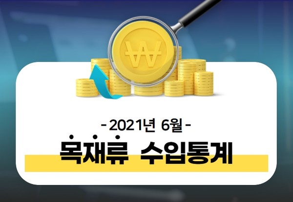 2021년 6월 목재류 수입 누계를 집계한 결과, 전년 동월 대비 금액기준으로 큰 폭으로 16.8%가 증가했다. 합판, 목탄, 마루판, 건축목공, 목제틀을 제외한 모든 품목의 수입금액이 큰 폭으로 증가했다. 수입단가는 전년 동월대비 8.5% 증가했다. 판지류, 파티클보드, 제재목, 섬유판 품목의 단가 인상폭이 컸다.