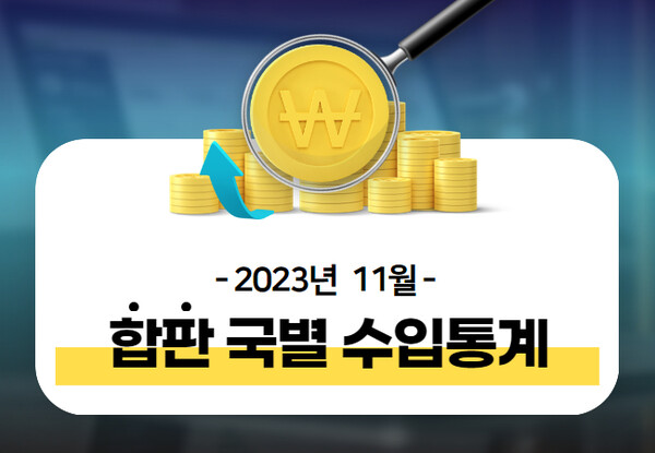 합판 수입금액은 인도네시아>베트남>중국>러시아>말레이시아 순이고 2023년 11월까지 누적 금액은 596,175천 달러. 약 7,496억 원이다. 전년 동월 누계 대비 수입금액은 16.9% 감소했고 물량은 4.8% 감소, 단가는 12.7% 하락했다. 수입국 중 인도네시아가 금액으로 33.6%를 차지했고 물량은 베트남이 47.5% 차지했다.