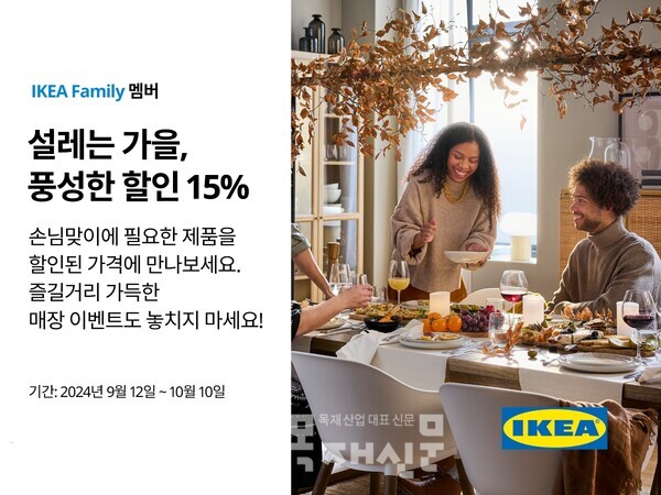 [서울 – 2024년 9월 12일] 홈퍼니싱 리테일 기업 이케아 코리아가 다가오는 추석과 가을을 맞아 9월 12일부터 10월 10일까지 ‘설레는 가을, 풍성한 할인’ 행사를 진행한다.