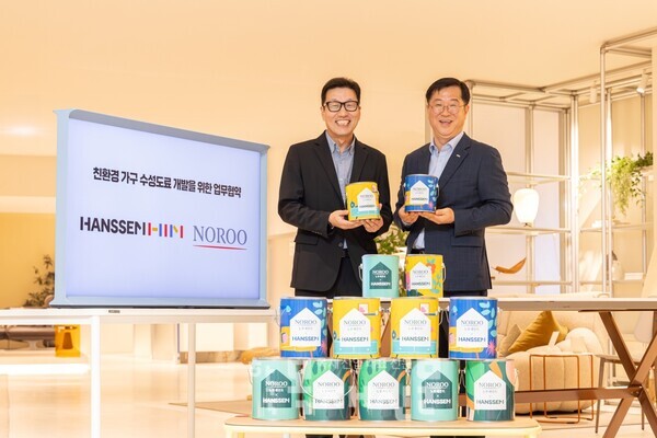 한샘은 고영남 한샘 연구소장과 김학근 노루페인트 상무가 참석한 가운데 한샘 송파점에서 협약식을 진행했다. 주요 협약 내용은 ▲친환경 수성 도료의 성능 검증과 실증 착수 ▲친환경 수성 도료 인테리어 소재 적용 협력 ▲친환경 수성 도료 성능 및 품질향상 ▲수입 원료 국산화 등이다.