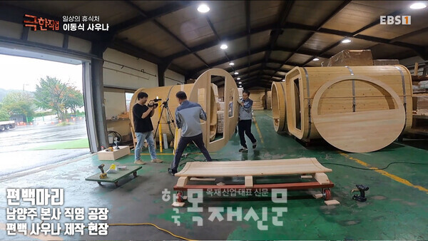 5일에 방송된 EBS ‘극한직업 826화’에는 건강과 편안한 휴식을 추구하는 현대인들을 위해 맞춤형 사우나와 매트리스, 펜션을 운영하는 여러 업체가 등장했다. 이중에서도 경기도 남양주시에 위치한 국내 최대 규모의 가구 단지에서 편백나무를 이용해 핀란드식 사우나와 야외용 욕조를 제작하는 편백마리의 모습이 담겨졌다.