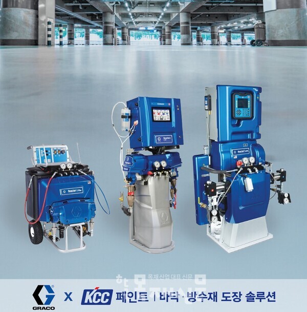 글로벌 응용소재화학기업 KCC(대표 정재훈)는 자사가 개발한 바닥ㆍ방수재용 폴리우레아 페인트1)와 함께 그레이코의 우레아 도장 장비2)를 통해 최적의 솔루션을 제공하는 원스톱 서비스를 제공하고 있다고 밝혔다. 그레이코는 미국 미네소타주 미네아폴리스에 본사를 둔 글로벌 도장 장비 전문 제조기업으로, 전 세계 100개국 이상에서 30,000개 이상의 대리점을 운영하고 있다. 국내 도장 장비 시장에서도 70% 이상의 점유율을 기록하며 1위를 고수하는 등 업계에서 높은 신뢰를 얻고 있다.