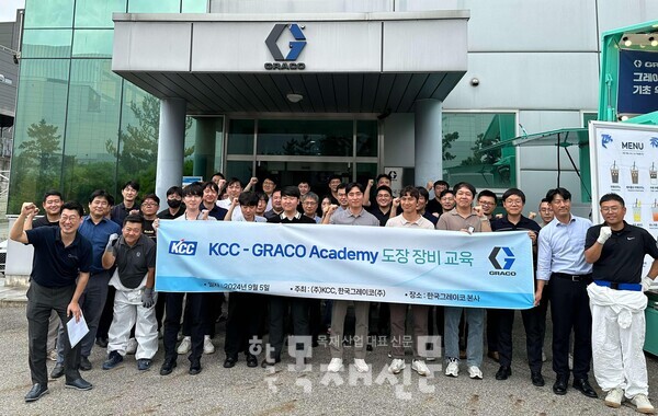 아울러 도장 현장에서 발생할 수 있는 장비 관련 어려움을 보다 신속하고 원활하게 해결하기 위한 ‘현장 대응 역량 강화’에도 힘을 쏟고 있다. KCC는 그레이코와 협의를 통해 지난 9월 KCC 도료 담당자 40여 명이 그레이코 한국지사를 직접 방문해 교육을 받을 수 있도록 했다. 이번 교육에서 KCC 도료 담당자들은 장비에 대한 기본 교육과 실제 사용법 및 간단한 문제 해결방법을 익힐 수 있는 실무 교육을 받았다. KCC는 이를 내부 전파함으로써 현장 대응 역량을 구축하고 내재화한다는 방침이다.