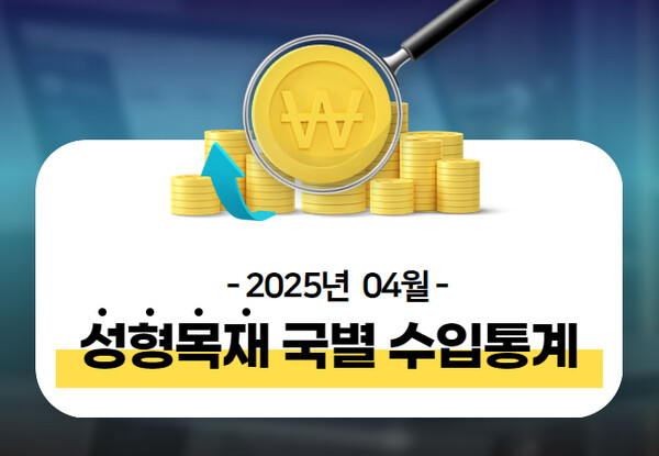 2025년 4월 목재류 수입 통계를 집계한 결과, 전년 동월 대비 누계 금액 기준으로 3.3%가 감소했다. 2025년 4월 목재제품의 전체 수입 물량은 작년 동월 누계 대비 2.2% 감소했다. 목재류 전체 수입단가는 작년 4월 누계보다 약 1.1% 하락했다. 제재목, 합판, 건축목공, MDF, PB, 성형목재, 펠릿의 단가가 상승했다.