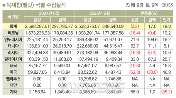 2025년 6월 목재칩(펠릿) 국별 수입실적