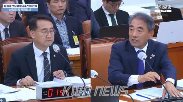 간벌목이 숲 건강·목재원 확보의 핵심임에도 현실 흐름이 따라가지 못하고 있다는 구조적 문제를 드러낸 대목이었다. 김선교 의원은 목재자급률 27% 목표는 어떻게 달성하느냐? 일본과 같은 목재자급 정책이 필요하지 않느냐? 많은 나무들이 땔감으로 사용되는 데 문제가 많다는 지적에 김청장은 “충분히 공감하고 대책을 세워 보고하겠다”고 했다.