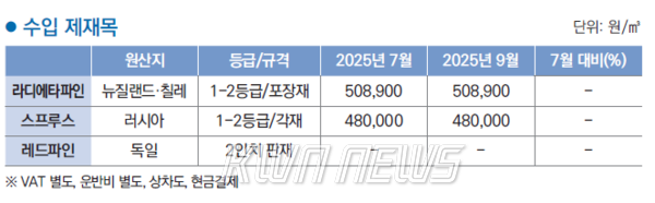 올해 상반기에 이어 목재제품의 가격은 9월까지도 큰 변동이 없는 상황이다. 7월에 비해 9월 목재가격은 대부분 변동이 없었으나 합판류는 인상 품목이 있었고 목조주택자재는 품목에 따라 인상과 인하가 있었다. 9월 중순까지도 무더위가 지속되었고 시장 수요는 좀처럼 살아나지 않아 가격변동 폭은 거의 없었다.